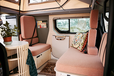 Voel je thuis in de natuur met de Amstervan®. Geniet overal van het vrije gevoel van de open doorloop van voor naar achter, relax in de loungebanken, slaap royaal in het 1,40 m brede bovenbed en kook buiten met uitzicht. Ideaal voor een weekendje kamperen in de buurt, off grid vakanties, of als mobiele werkplek. Een perfect alternatief voor de bekende vw two-tone. Net zo compact en wendbaar, en parkeren kan gewoon voor de deur. Kleinschalig ontworpen en gebouwd in Nederland voor iedereen die de vrijheid en sfeer van kamperen zoekt, zonder in te leveren op comfort en gemak.
