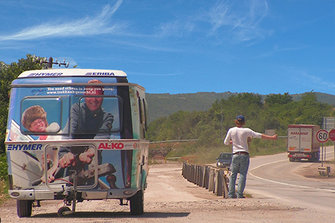 In zijn caravan geeft Tjerk korte inspirerende presentaties.